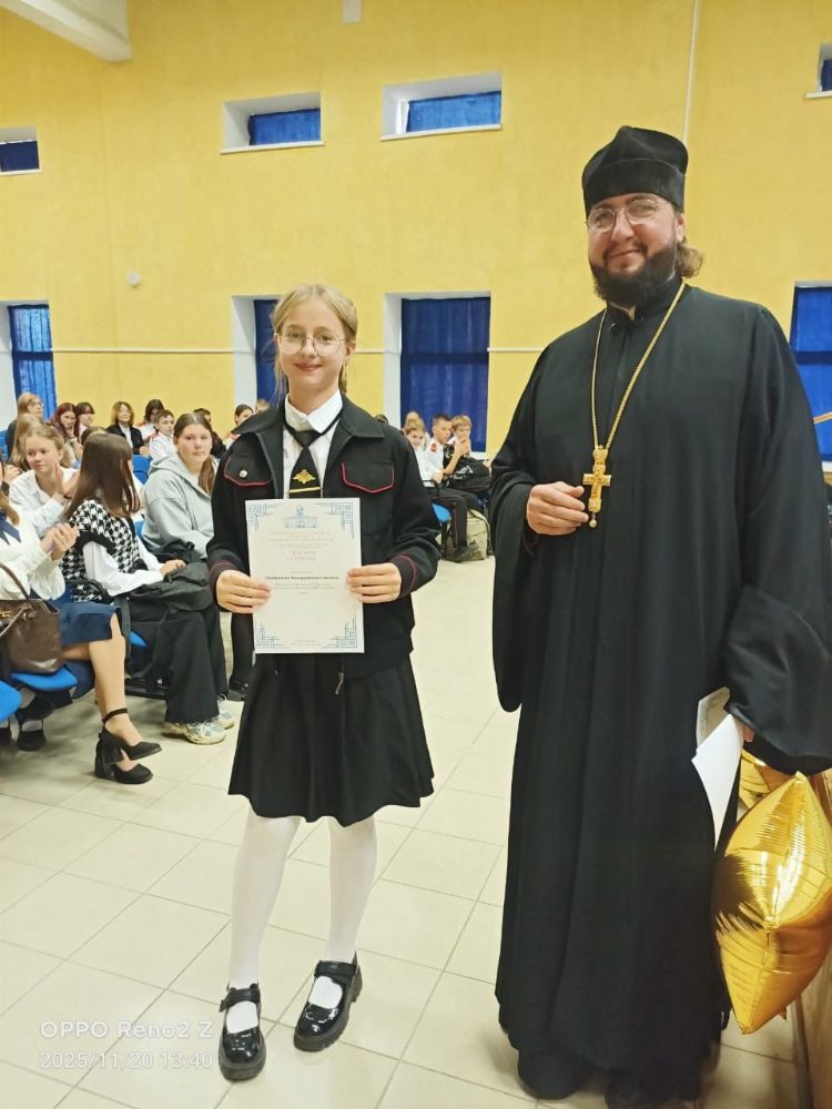 20 ноября в СОШ 38 г. Абинска помощник благочинного 8-го Абинского районного округа по образованию протоиерей Виктор Щавинский вручил Дипломы победителям олимпиады по Основам православной культуры среди классов казачьей направленности. Отец Виктор обратился к ребятам с напутственным словом, в котором призвал полученные знания внедрять в свою жизнь: ведь казачьи традиции основаны на вере православной, а вера на протяжении всей нашей жизни дает нам возможность всегда ощущать присутствие Божие рядом с собой и об этом свидетельствовать своим личным опытом христианской жизни.