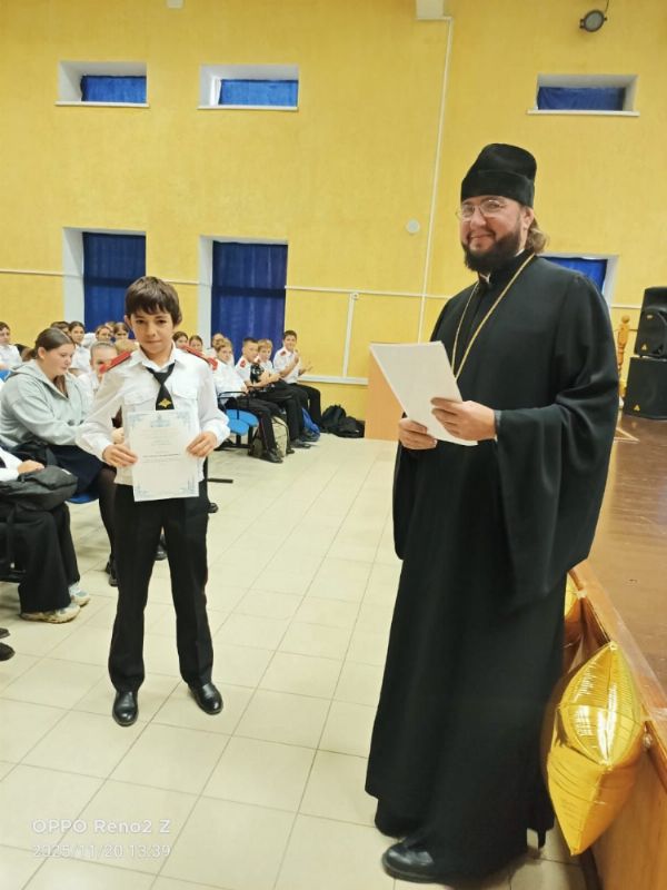 В актовом зале СОШ 38 г. Абинска прошла беседа помощника благочинного 8-го Абинского округа по образованию настоятеля храма благоверного великого князя Александра Невского г. Абинска протоиерея Виктора Щавинского с учащимися классов казачьей ...