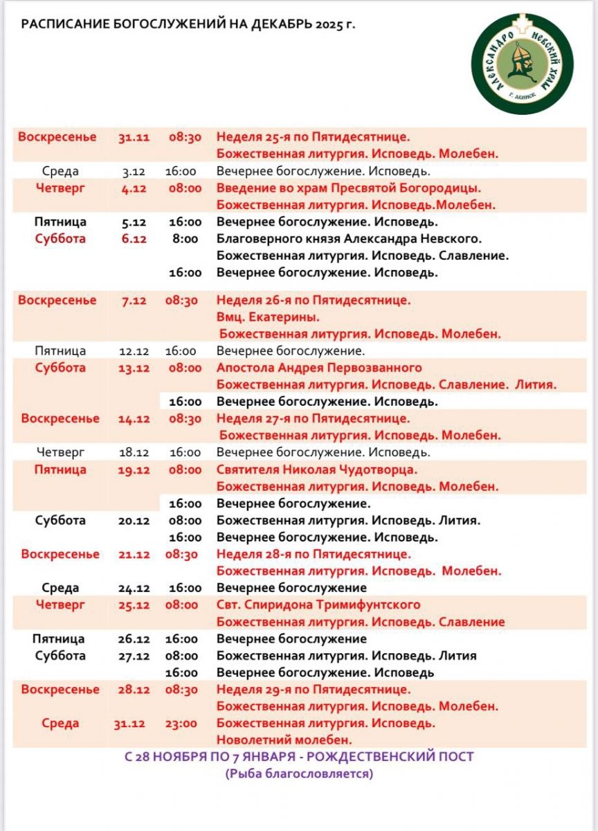 Расписание богослужений