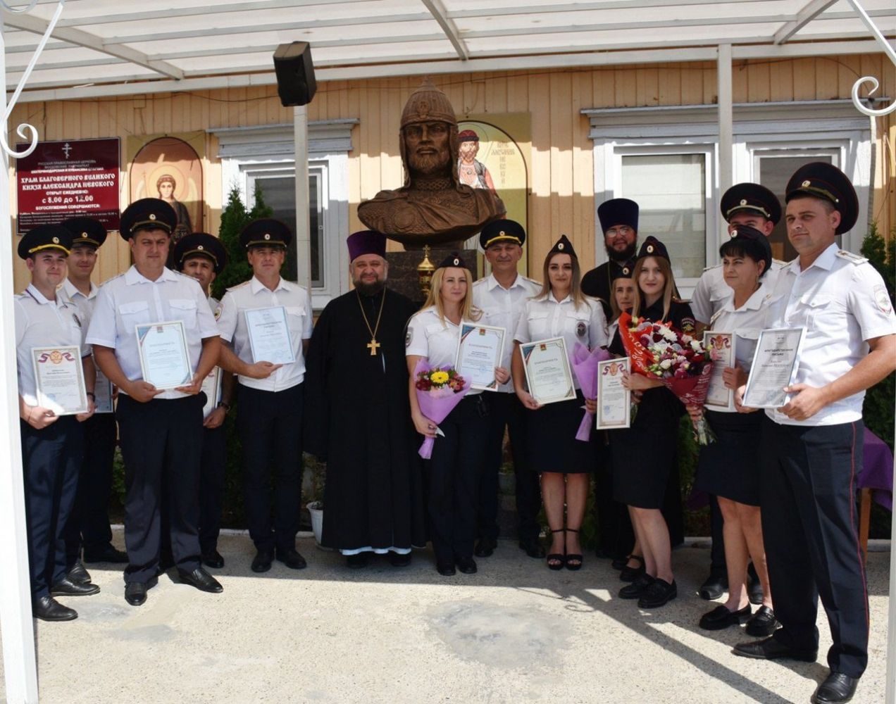 В рамках торжественного мероприятия сотрудников патрульно-постовой службы полиции Отдела МВД России по Абинскому району торжественно поздравили на территории храма благоверного великого князя Александра Невского г. Абинска и выразили им глубокую признательность за их самоотверженный и напряжённый труд, честность и высокий профессионализм.