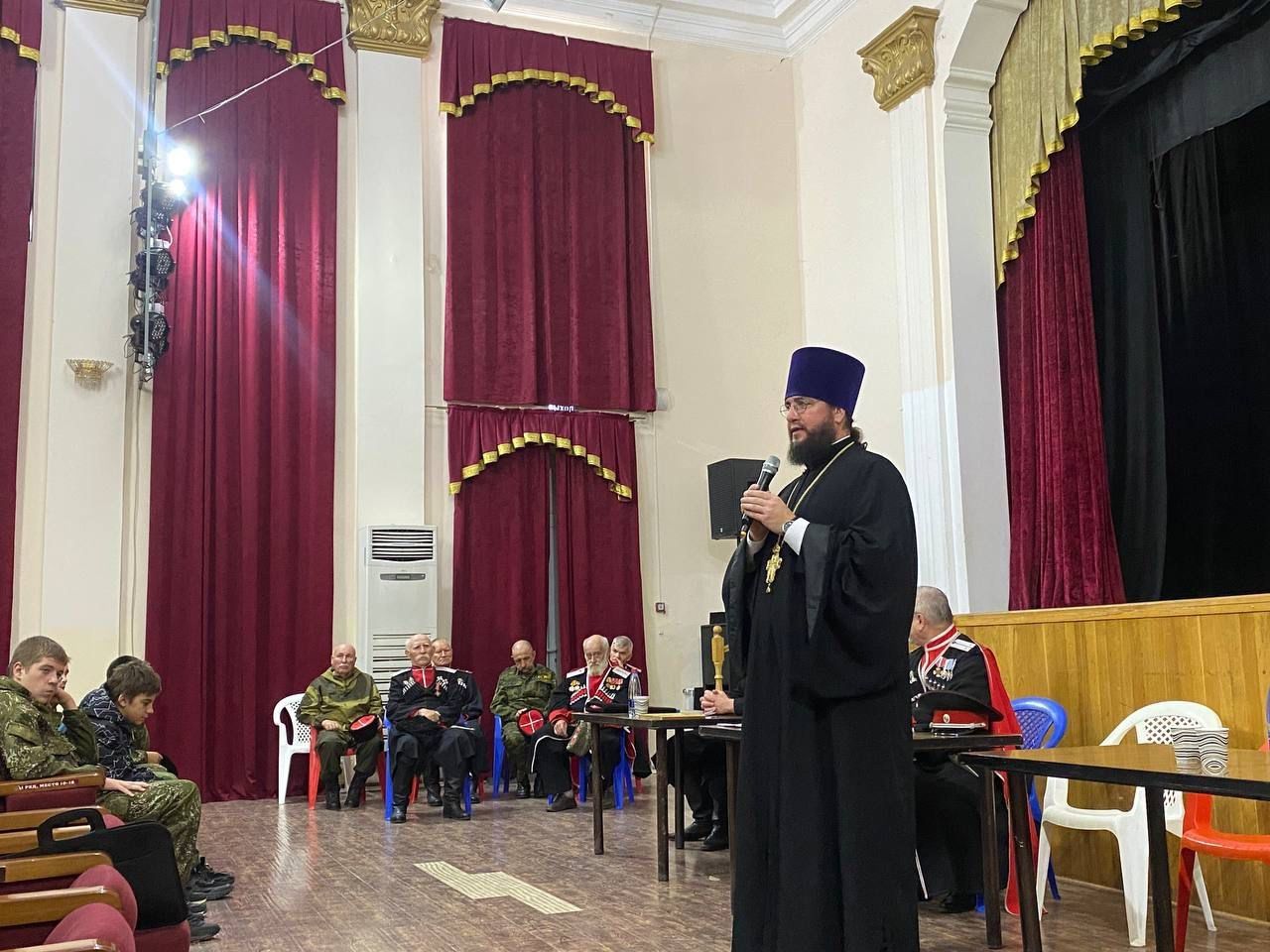 2 ноября 2025 г. духовник Абинского ГКО настоятель храма благоверного великого князя Александра Невского г. Абинска протоиерей Виктор Щавинский принял участие в отчетном сборе Абинского городского казачьего общества.