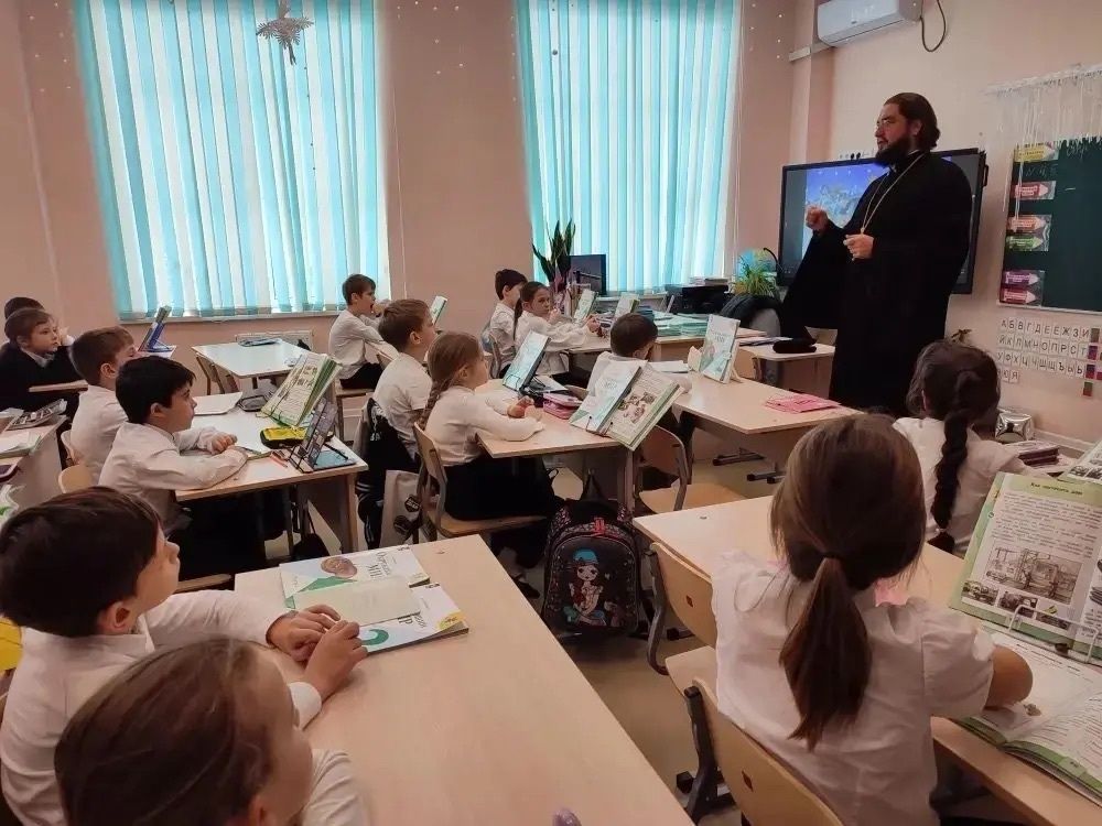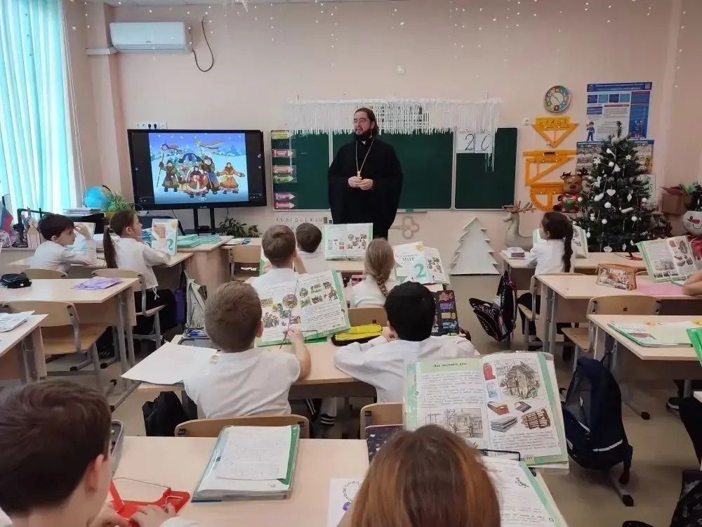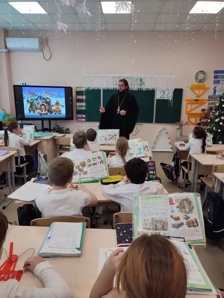 20 января помощник благочинного 8-го Абинского районного округа настоятель храма благоверного великого князя Александра Невского г. Абинска протоиерей Виктор Щавинский посетил СОШ 4 г. Абинска. Он провел беседу с учениками младших классов, в которой был продемонстрирован мультипликационный ролик о Рождестве Христовом. Священник рассказал об евангельских историях Рождества Христова и Крещения Господня; призвал детей стремится жить по учению Христа и быть послушными родителям и учителям, научаться преданной и верной дружбе.